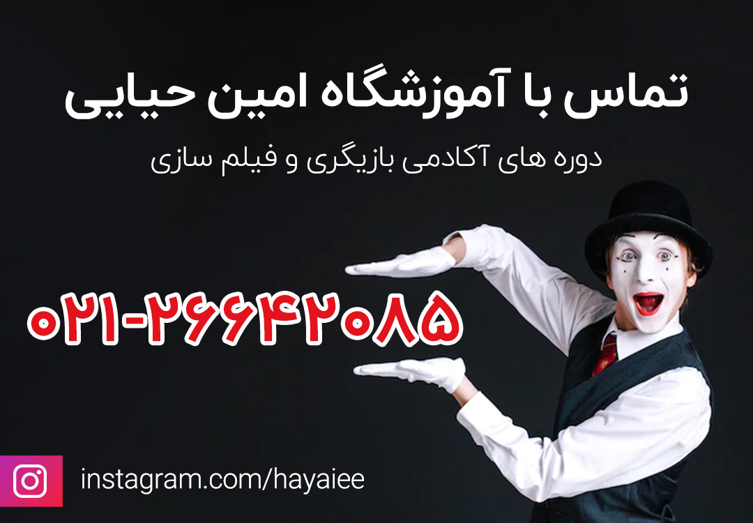 در همین راستا، می‌توانید در دوره مقدماتی بازیگری آموزشگاه امین حیایی نیز شرکت کنید. این دوره به‌صورت آنلاین برگزار می‌شود که شما هرکجای کرج باشید می‌توانید در آن شرکت کنید. برای شرکت در این دوره کافیست با شماره 02126642085 تماس گرفته و یا به سایت hayaiee.com مراجعه کرده و فرم پیش‌ثبت‌نام دوره مقدماتی را پر کنید تا کارشناسان موسسه با شما تماس بگیرند.