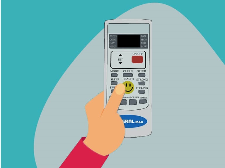 دکمه هلث به رنگ زرد در ریموت کنترل کولر گازی جنرال لبخندی واقع شده است و وقتی شما این دکمه را فشار می دهید، شکل خورشید را بر روی صفحه ی دیجیتال کولرگازی مشاهده می کنید. با فشار دادن این دکمه می توانید دمای مطلوبی را در محیط زندگی خود به وجود آورید.