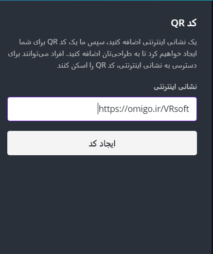 6. حال آدرس مورد نظر را وارد و روی ایجاد کد کلیک کنید