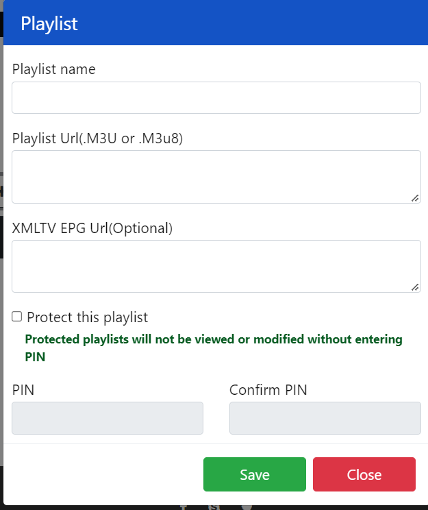 در این صفحه لینک m3u دریافتی از سایت sibiptv وارد کادر play list url کنید .بخش playlist name را نیز با نام دلخواه وارد کنید .