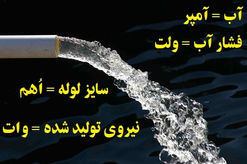 به منظور کمک به درک این اصطلاحات، می توان آن را به سیستم لوله کشی تشبیه کرد. ولتاژ معادل فشار آب ، جریان معادل سرعت جریان آب و مقاومت مانند اندازه ی لوله است.