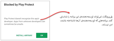 به کاربر اخطار میدهد که گوگل برنامه نویس این برنامه رو نمیشناسه و به این