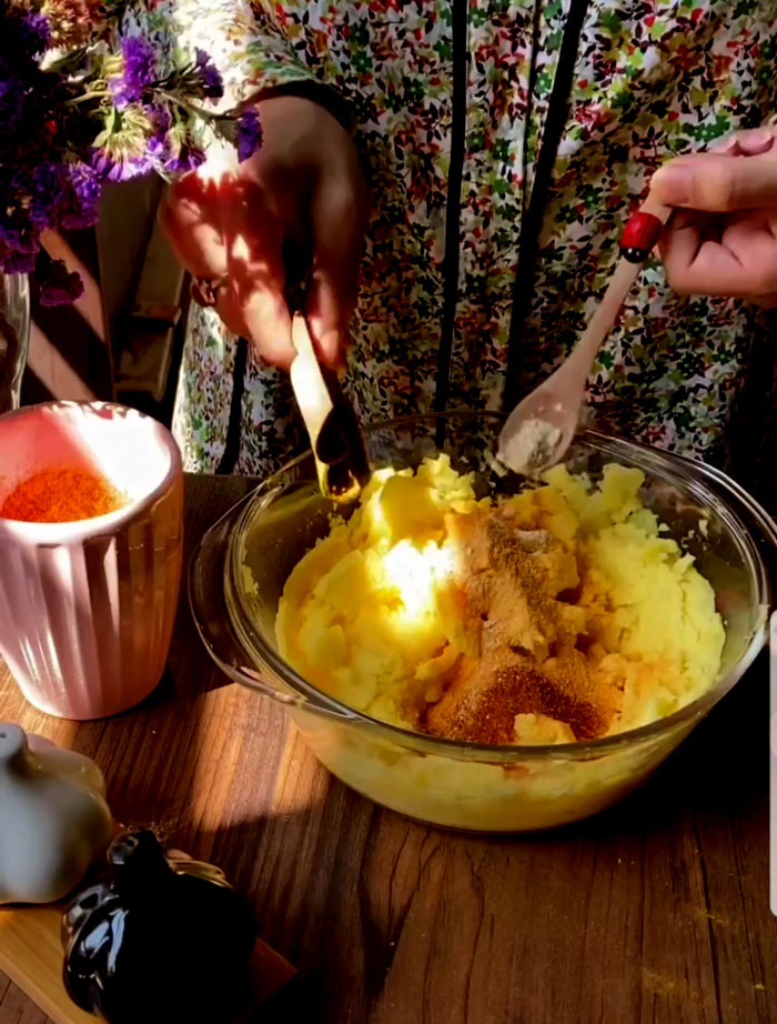 در نهایت بقیه مواد یعنی تخم مرغ، آرد، جعفری، نمک و فلفل را به همراه آرد نخودچی اضافه کنید و همه مواد را خوب هم بزنید تا با هم مخلوط شوند.