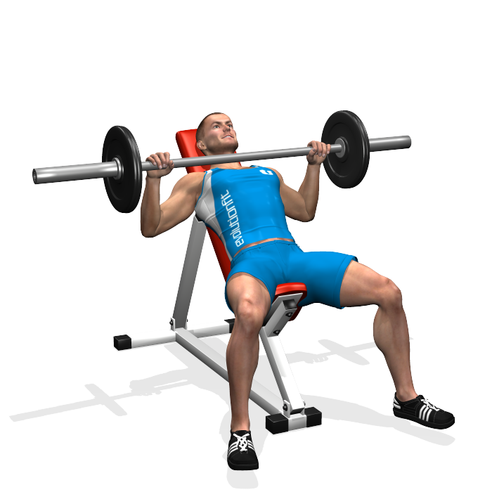 نیمکت پرس بالا سینه. برای این تغییر، نیمکت باید بین 45 تا 60 درجه به سمت بالا زاویه داشته باشد، بنابراین کمی به عقب متمایل شوید. این ماهیچه های بالای سینه و شانه ها را هدف قرار می دهد.