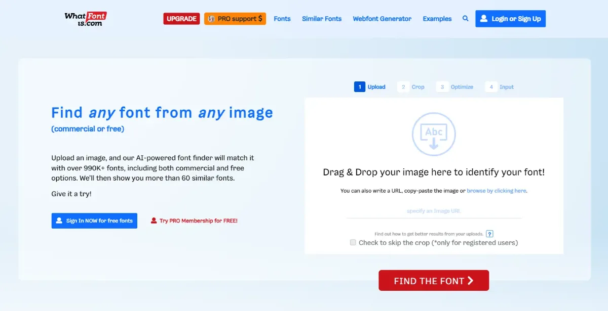 این وبسایت نیز مانند دیگر ابزارهای تشخیص فونت از روی عکس عمل میکند و تنها فونت های انگلیسی را شناسایی می کند. این ابزار به کاربران امکان میدهد تصاویر حاوی متن را آپلود کنند تا فونت موردنظر را شناسایی کنند.