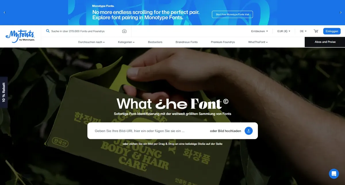 یکی دیگر از سایت های شناسایی فونت What the Font نام دارد؛ اما نتایج وبسایت What the font با ابزارهای مشابه تشخیص فونت تفاوت دارد به این معنی که نتیجه به کیفیت عکس وابسته است. البته این ابزار نقاط ضعفی نسبت به نمونههای دیگر دارد مثلا در وبسایت What Font Is فونتهای بهتری پیدا خواهید کرد. نکته مثبت برنامه این است که نه تنها میتوانید بهصورت آنلاین استفاده کنید بلکه یک برنامه تشخیص فونت اندروید و iOS است.
