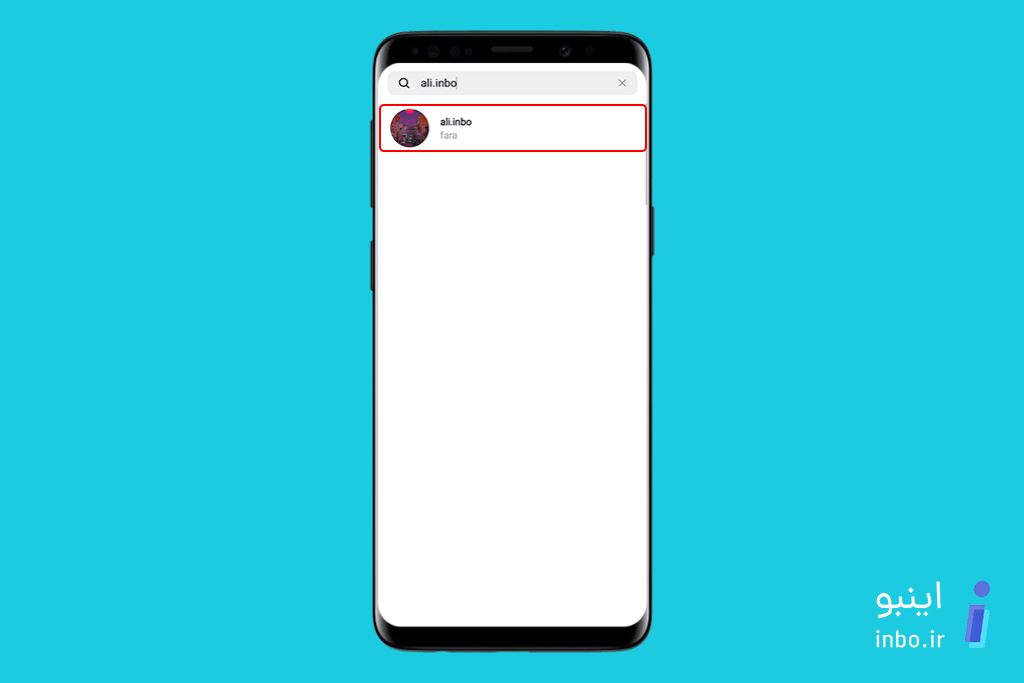 - یوزرنیم پیجی رو که میخواین باهاش پست مشترک بذارین، بنویسین و بعد از پیدا شدن روش کلیک کنین.