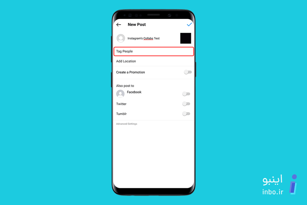- در مرحلهی نهایی پست گذاشتن، روی گزینهی Tag People کلیک کنین.